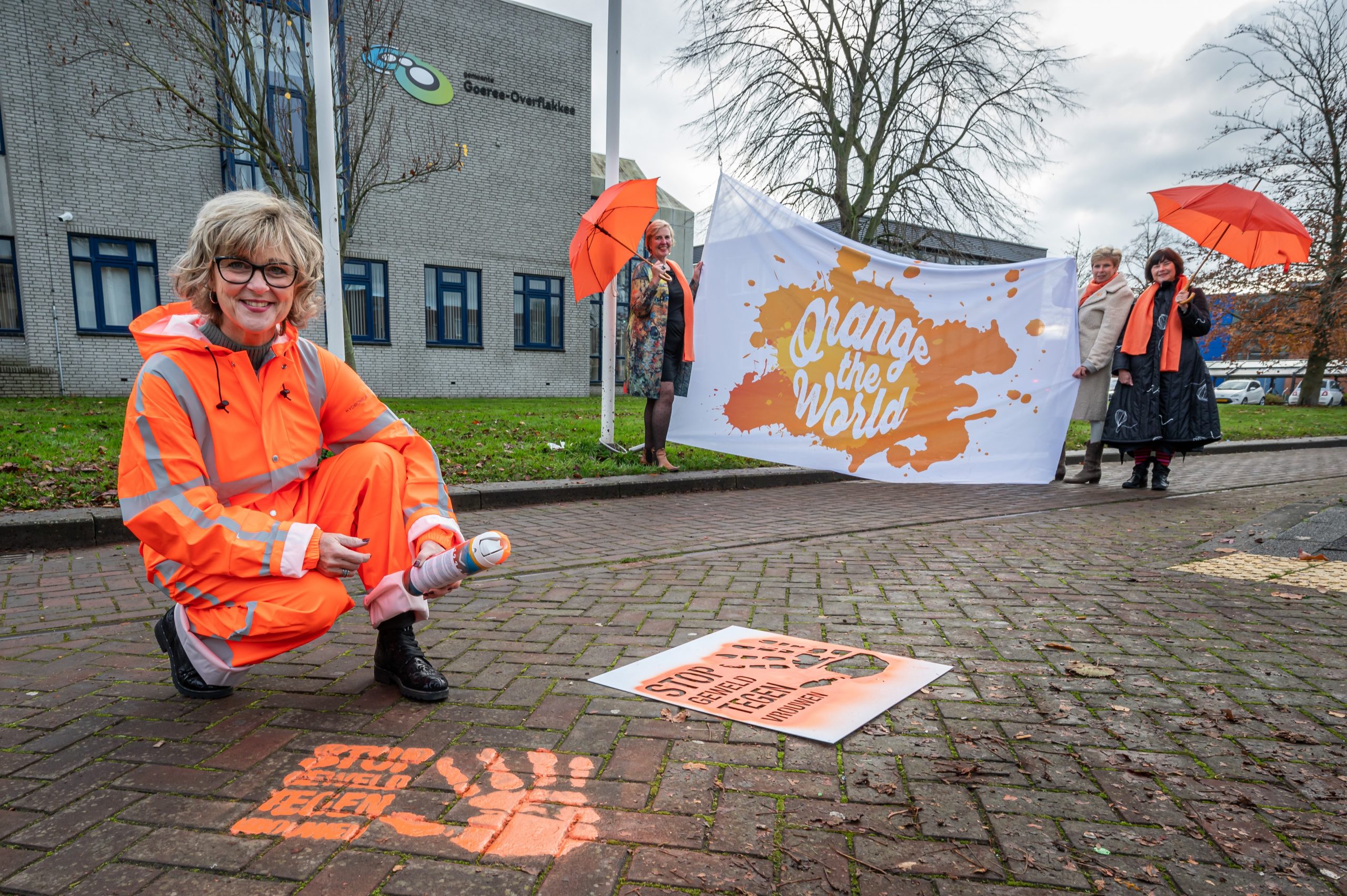 Goeree Overflakkee zegt NEE tegen geweld tegen vrouwen en sluit zich aan bij de internationale campagne Orange the World. Daarom dragen vanaf 25 november verschillende standbeelden een oranje sjaal en staat er oranje graffiti op straat op drukke plekken.
