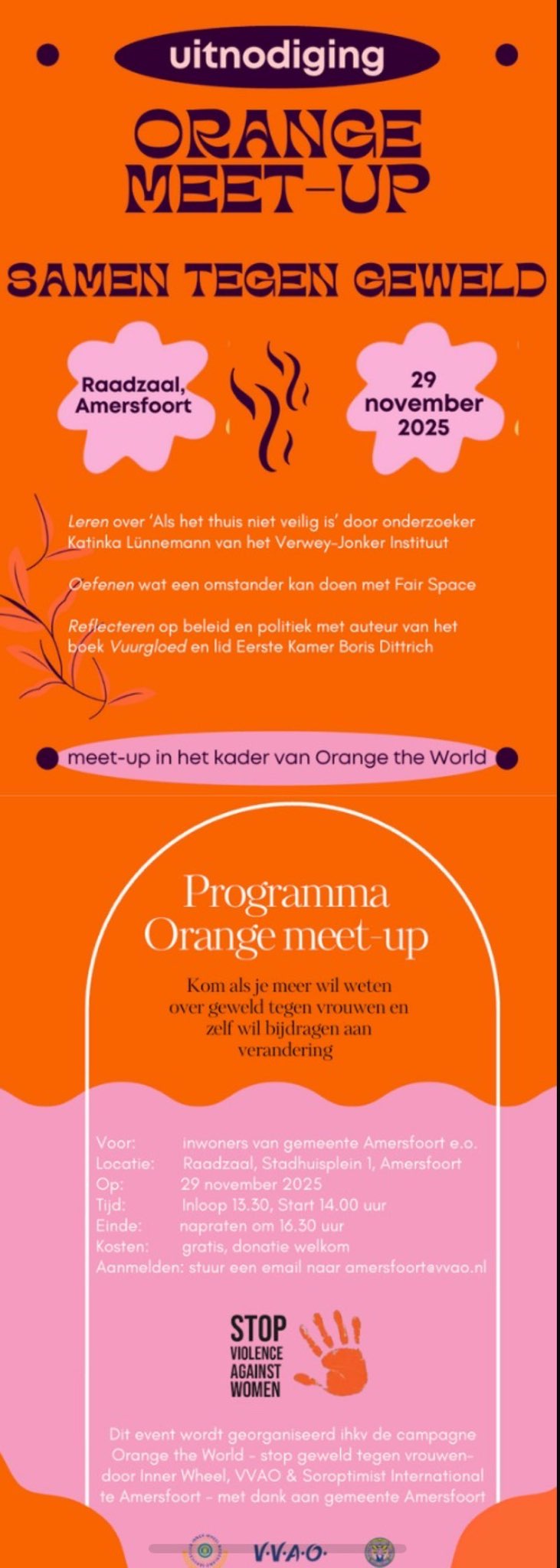 Orange meet-up Amersfoort Orange Meet -Up Kom als je meer wilt weten over geweld tegen vrouwen en zelf wil bijdragen aan verandering. Delen? Dat kan met: Terug naar overzicht