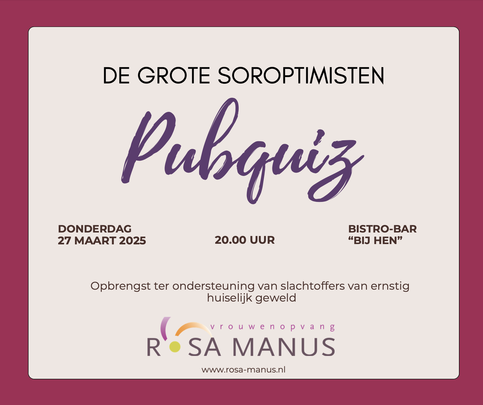 Grote Soroptimisten Pubquiz 27 maart 2025