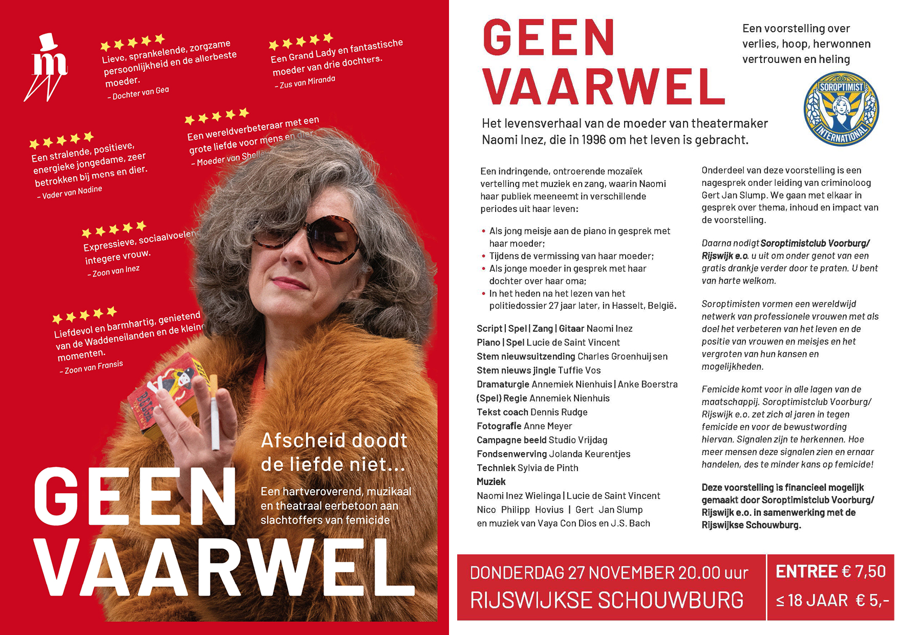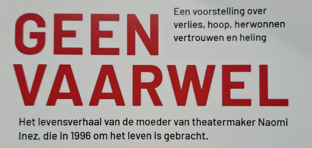 Op donderdag 27 november 2025 wordt “Geen Vaarwel” uitgevoerd in de Kleine Zaal van de Rijswijkse Schouwburg.