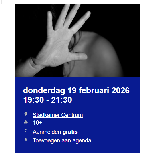 Wat speelt zich af achter de voordeur? Welke rode vlaggen kun je herkennen? En wat kun jij doen als je je zorgen maakt? Tijdens deze bijeenkomst neemt Gerjanne Voorsluijs, trainer huiselijk geweld en kindermishandeling, ons mee in het onderwerp met inzichten, herkenning en praktische handvatten.