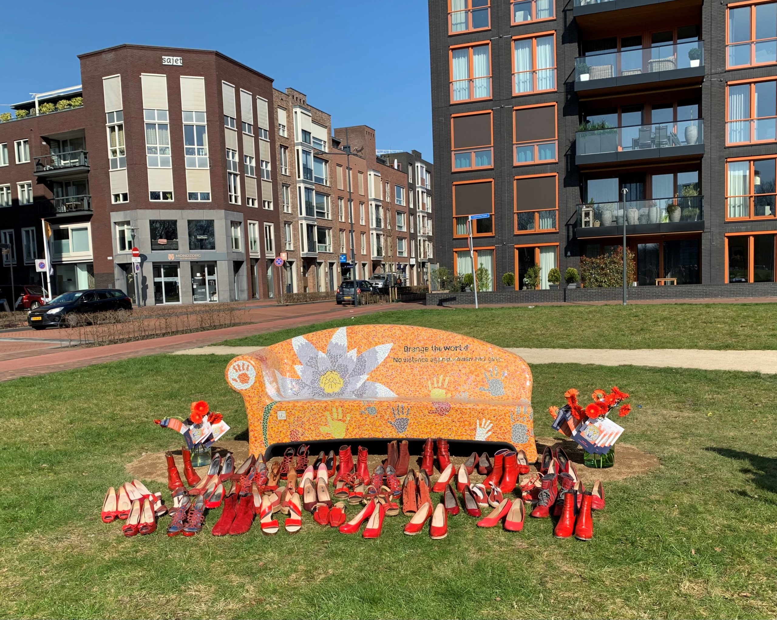 Zondag 8 maart, Internationale Vrouwendag, om 13.00 uur onthult wethouder Martijn Beek van de gemeente Veenendaal een plaquette met het gedicht ‘Orange the World’ bij de Orange the World Social Sofa bij het gemeentehuis in Veenendaal.