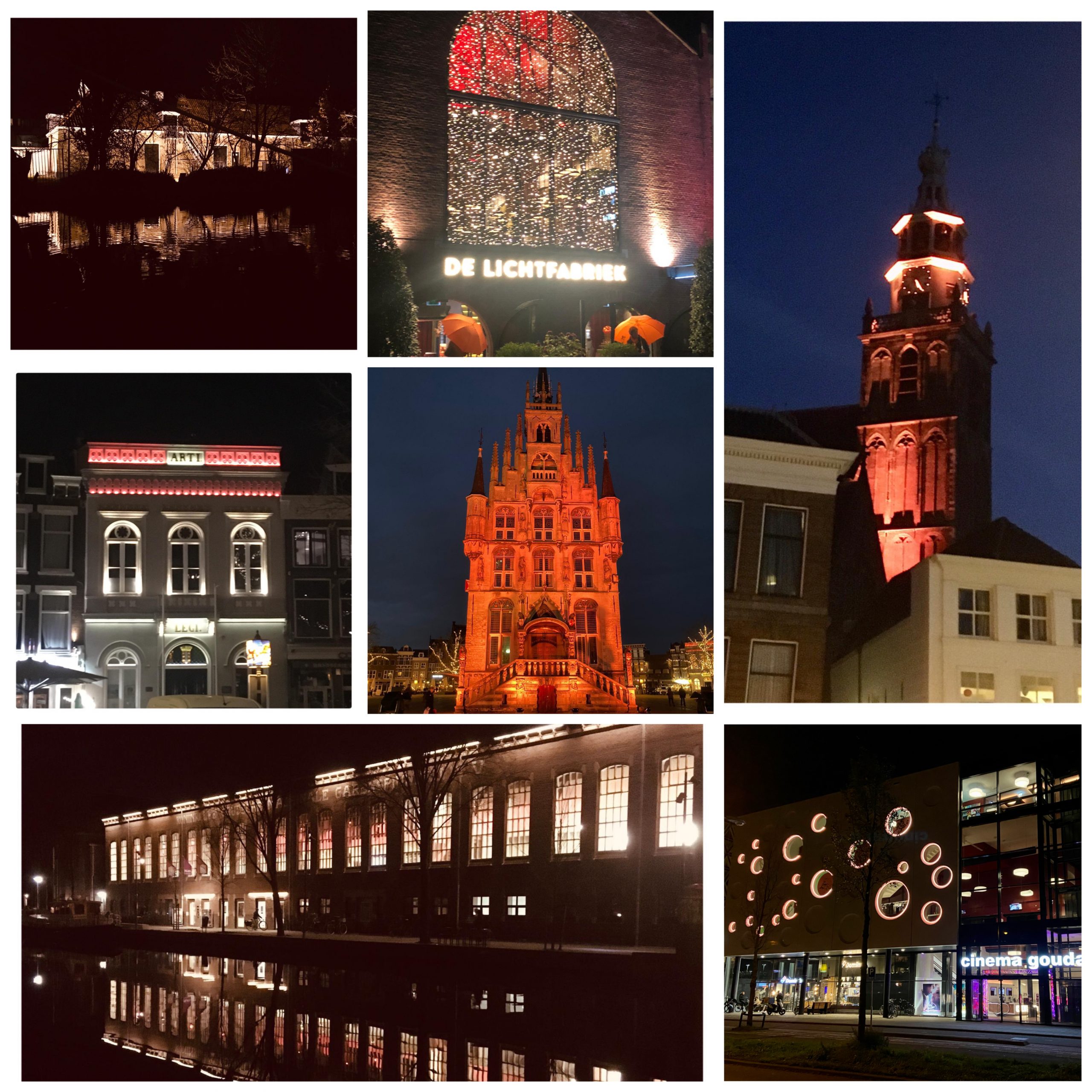 • 25 november ’s avonds: in Gouda lichten 9 gebouwen oranje op. De toren van de St. Jan, het Oude Stadhuys, Cultuurhuis de Garenspinnerij, de Chocoladefabriek, Arti Legi, Cinema Gouda, De Waag, de Lichtfabriek en So What.