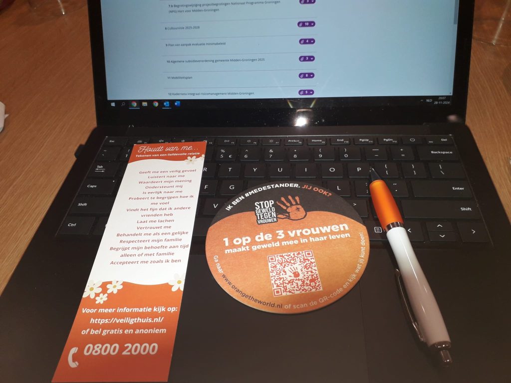 Bij de raadsvergadering van Midden Groningen werd aandacht besteed aan Orange The World en werd een initiatiefvoorstel over beleid t.a.v. geweld tegen vrouwen aangekondigd. Gesteund door alle vrouwen in de Raad.