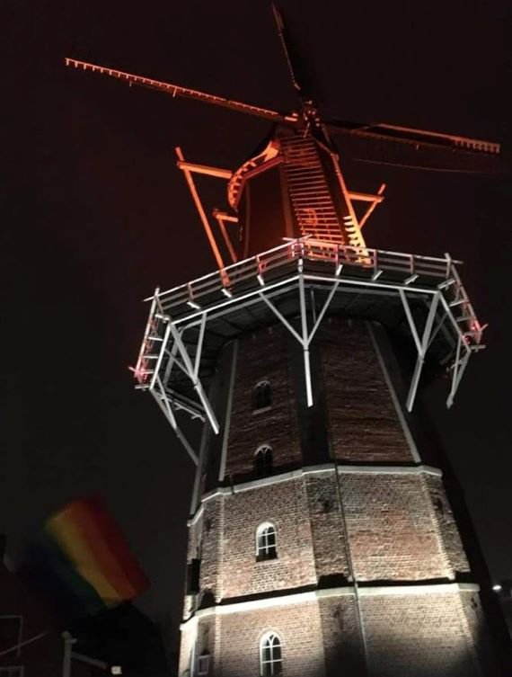 - In de gemeente Delfzijl kleurt molen Adam opnieuw oranje.