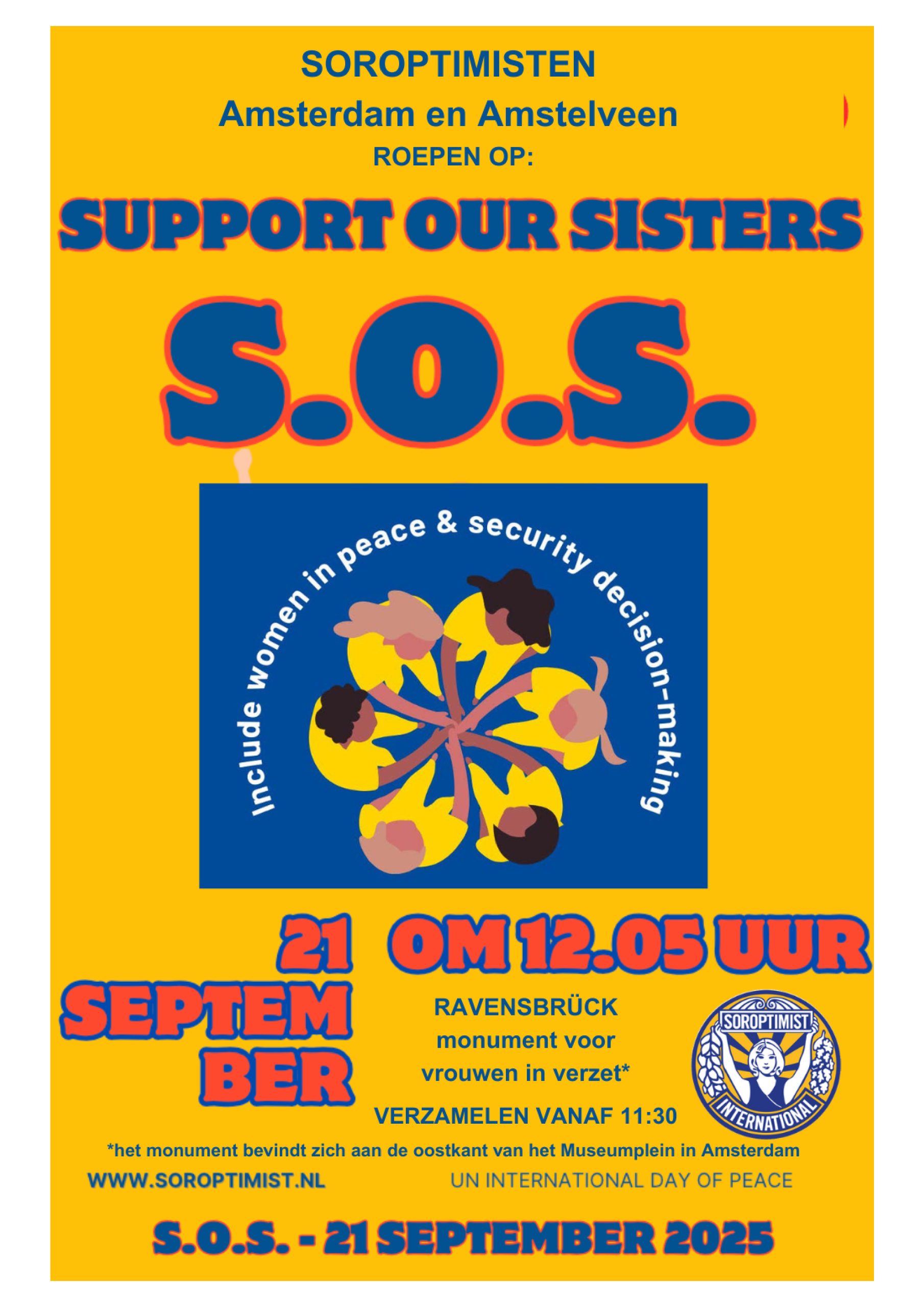 De Amsterdamse en Amstelveense Soroptimisten roepen op: kom naar het Museumplein waar we om vijf over twaalf samen in stilte staan en zichtbaar zijn voor vrede en menselijke waardigheid. Iedereen is welkom! Laat je zien.