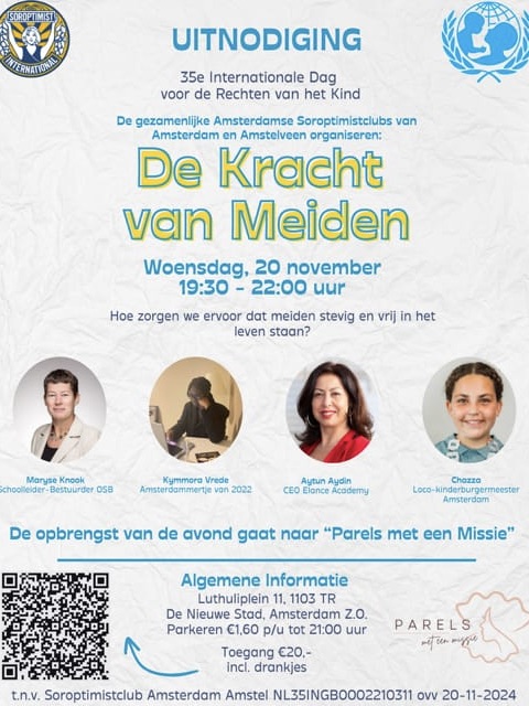 Op de dag van de Rechten van het Kind organiseren de gezamenlijke Amsterdamse Soroptimistclubs van Amsterdam en Amstelveen:
