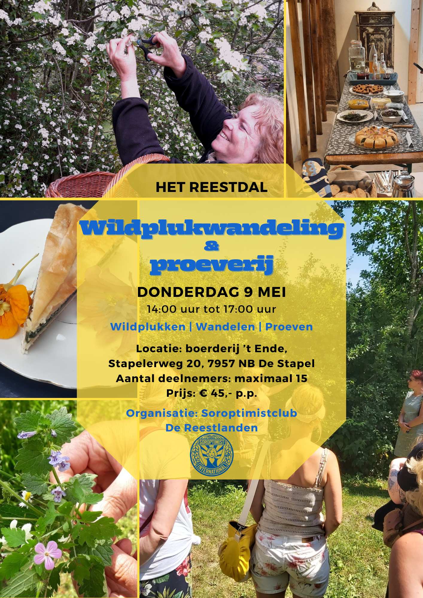 Op donderdag 9 mei organiseert Soroptimistclub De Reestlanden samen met Wildplukster Olga de Lange een wildplukwandeling in het Reestdal met informatie over eetbare planten en bloemen. Aansluitend staat er een heerlijke wilplukproeverij klaar bij beeldenaltelier Wildschuterve. De opbrengst van deze middag gaat naar ‘Orange the World’. de wereldwijde campagne tegen geweld tegen vrouwen en meisjes.