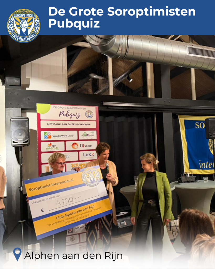 Op donderdag 26 februari 2026 organiseert Soroptimistclub Alphen aan den Rijn voor de tweede keer De Grote Soroptimisten Pubquiz. Na het succesvolle evenement in 2025 belooft ook deze editie een gezellige en goed verzorgde avond te worden, waarbij ontmoeting, plezier en maatschappelijke betrokkenheid centraal staan.