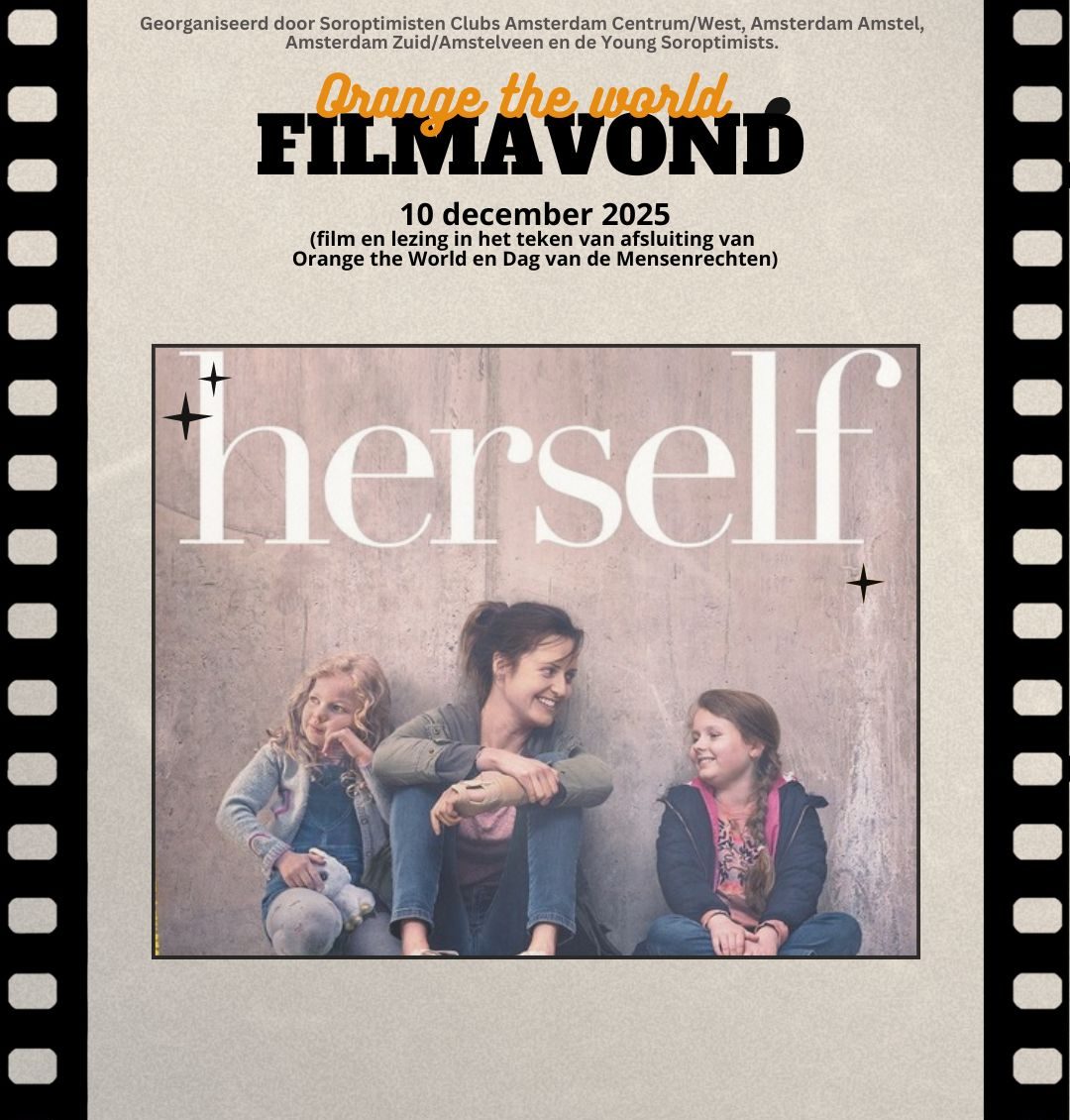 De vier Amsterdamse en Amstelveense Soroptimistclubs hebben de handen ineen geslagen voor een Orange the World filmavond. Deze avond op 10 december 2025 met filmvertoning en lezing staat in het teken van de Dag van de Mensenrechten en de afsluiting van Orange the World.