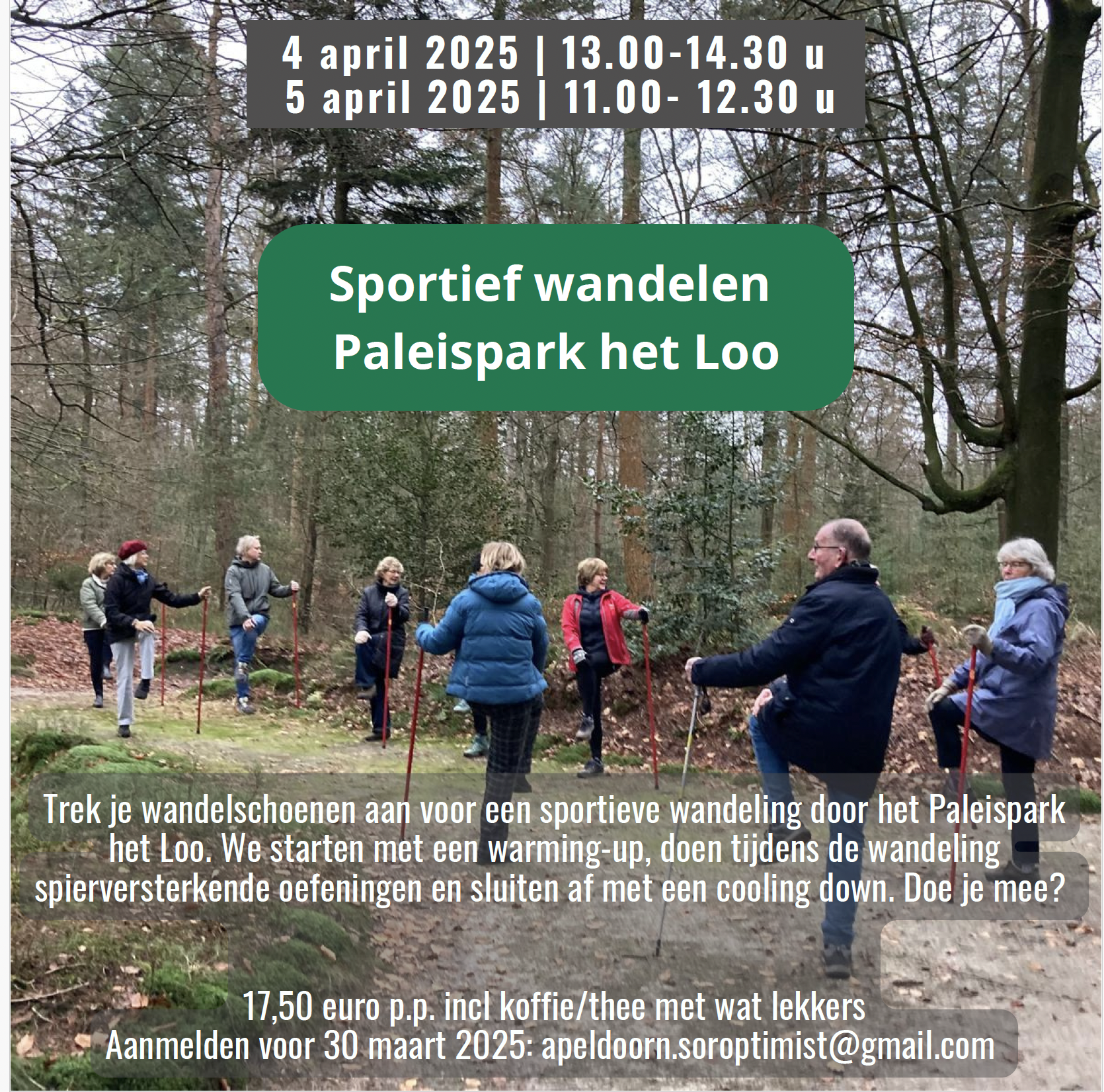 Trek je wandelschoenen aan voor een sportieve wandeling door het Paleispark Het Loo. We starten met een warming-up, doen tijdens de wandeling spierversterkende oefeningen en sluiten af met een cooling down. Doe je mee?