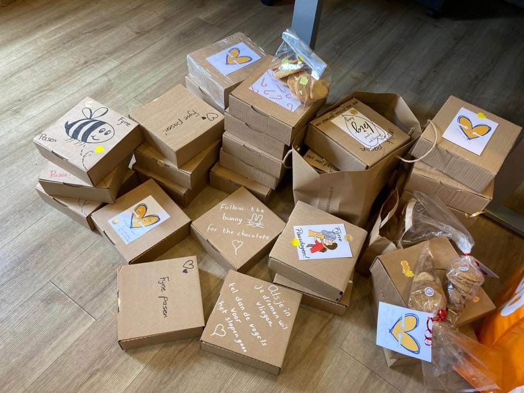 In het weekend van 10 april hebben veel leden koekjes en lekkers gebakken voor de zwerfjongeren in Apeldoorn. Maandagmorgen 11 april zijn de mooi versierde doosjes met lekkernijen door onze voorzitters overhandigd aan Marco Betman van Stichting Zwerfjongeren.