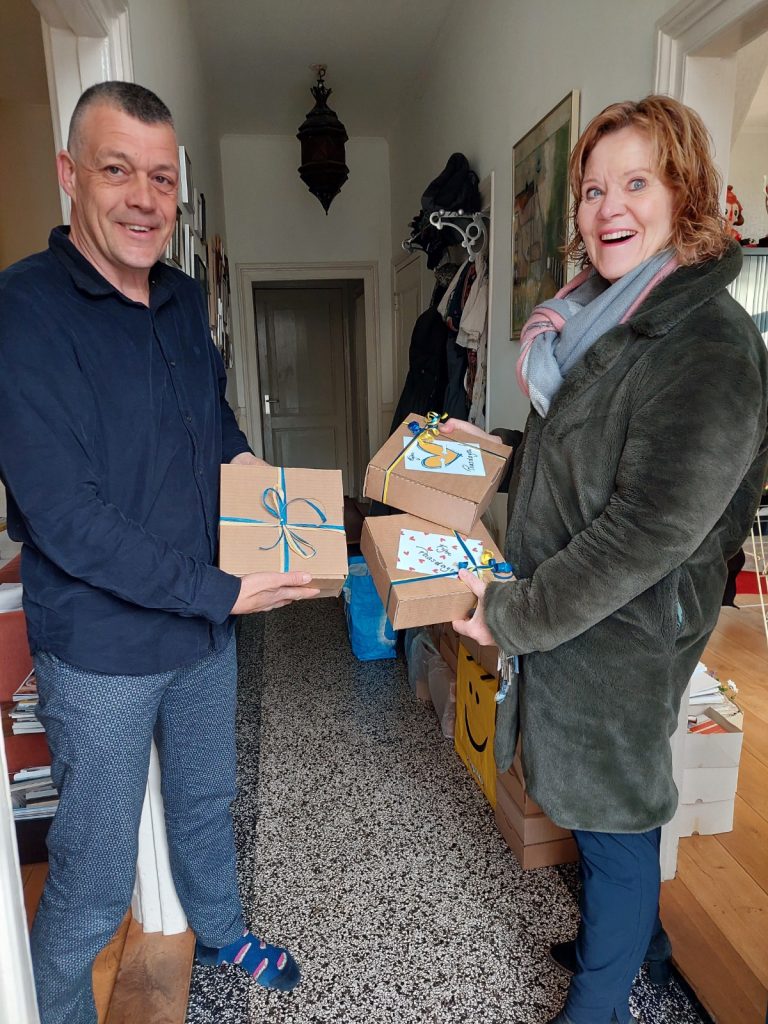 Hij was aangenaam verrast door de hoeveelheid doosjes en kijkt er naar uit om ze uit te delen.