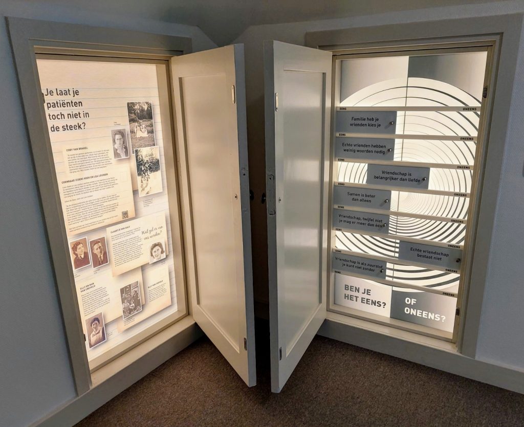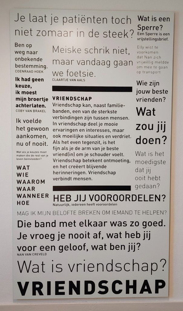 Na de wandeling was er gelegenheid om in het Herinneringscentrum op de begane gronde de expositie te bezoeken. Op de eerste verdieping is een educatief programma voor scholieren ontwikkeld. Ze kunnen er aan de slag met vier thema’s Vrijheid, Vriendschap, Veiligheid en Vluchten.,