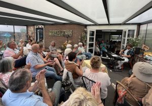 Een zomers tuinconcert van Jason Staal bij een van onze leden. De opbrengst van de catering is voor de Open Hof in Assen Oost. Dubbel genieten dus!