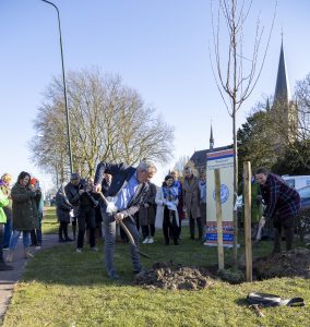 Wethouder Piet de Klein en onze president Gea Offerein gooide de eerste aarde op de nieuwe boom in Beuningen.