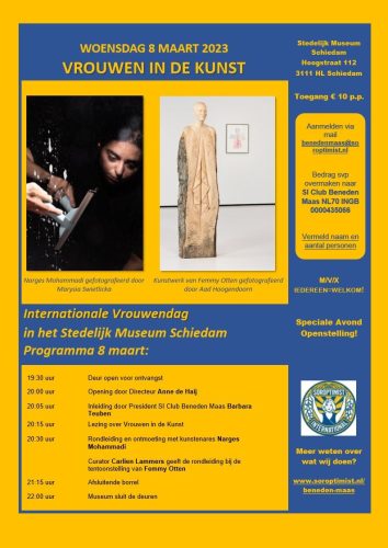Op 8 maart vanaf 19:30 uur gaan de deuren van het Stedelijk Museum Schiedam open voor het event ‘Vrouwen in de Kunst’ voor alle geïnteresseerden (m/v/x) om Internationale Vrouwendag te vieren.