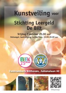 Kunstkring BeeKk is de kunstenaarsvereniging in de gemeente De Bilt. BeeKk bestaat dit jaar 25 jaar en haar motto is “wie jarig is trakteert”. Leden van BeeKk hebben daarom kunstwerken ter beschikking gesteld voor de veiling.