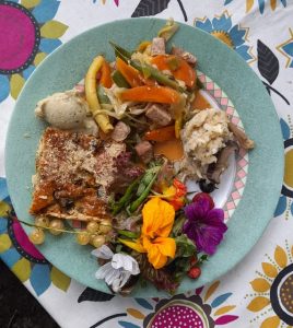 Daarna aten we met elkaar. De maaltijd was bereid met producten uit het bos.