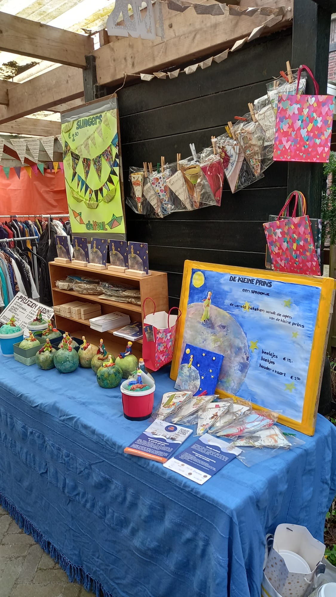 Koningsdagmarkt Loppersum 30-04-2024Koningsdag 2024 in Loppersum. Net als vorige jaren waren we weer van de partij op de Koningsdagmarkt in Loppersum. Dit keer met plantjes, boeken, zelfgemaakte beeldjes van Le petit prince en vintage kleding. We verdienden 2007 Euro voor onze projecten. Vorige blog Volgende blog
