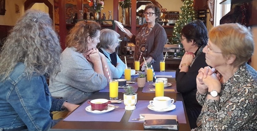 Nieuwjaarsbijeenkomst 2025 04-02-2025 ‘ Kunst en lekker eten in Daam ‘ Vanuit het thema Kunst en Lekker eten in Daam, bezochten we museum Stad Appingedam, Galerie de Gangerie van Greet Dijkstra en kunstuitleen Artchoices van ons aspirant lid Brigitta Meijer. We hebben heerlijk gegeten en gedronken bij het Hof van Daam het en De Keuken van India . Verder was er nog wat tijd om te shoppen. Met 24 Sorren en 2 aspirant leden werd het een fijne dag met tijd om bij te praten en elkaar te ontmoeten. Vorige blog Volgende blog