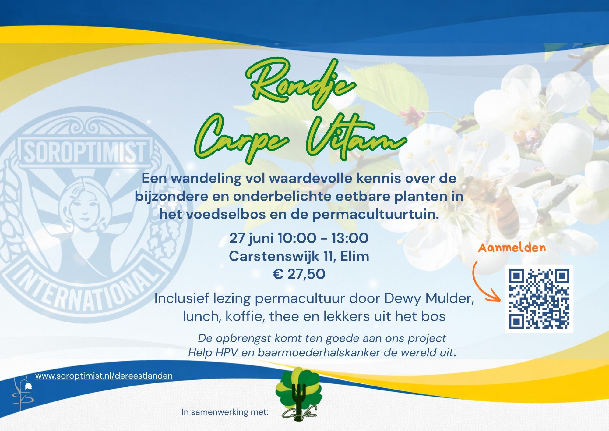 Soroptimistclub De Reestlanden organiseert een Rondje Carpe Vitam in samenwerking met Dewy Mulder van Carpe Vitam.