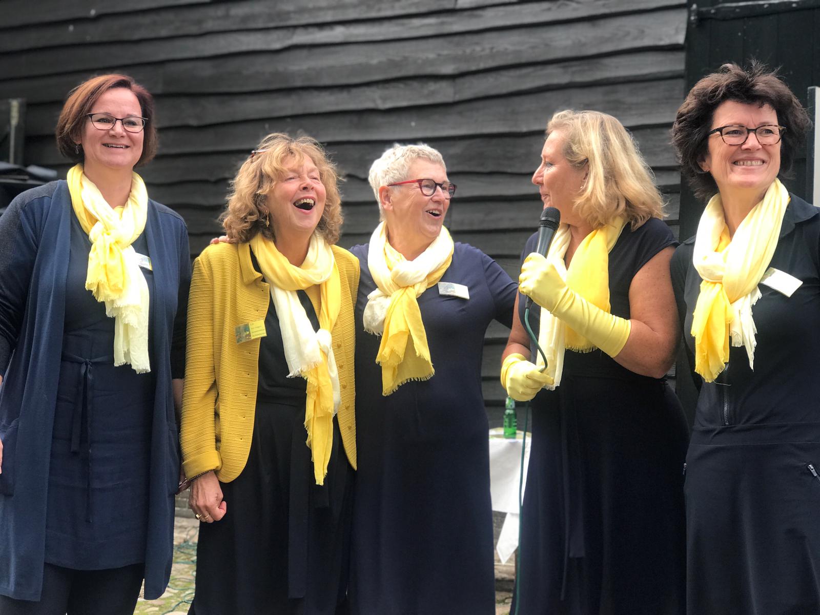 Oh wat was het een mooi feest: stijlvol met een mooie opbrengst voor Free a girl. We hebben perfect weer. De ontvangst met koffie, thee en taart loopt op rolletjes. De taarten die veelal door de leden thuis zijn gebakken zien er prachtig uit en, ook niet onbelangrijk, ze smaken heerlijk. De hapjes van de Wereldkeuken is een mooie aanvulling op het feest en onze gasten gaan met een weldadig gevoelg naar huis.