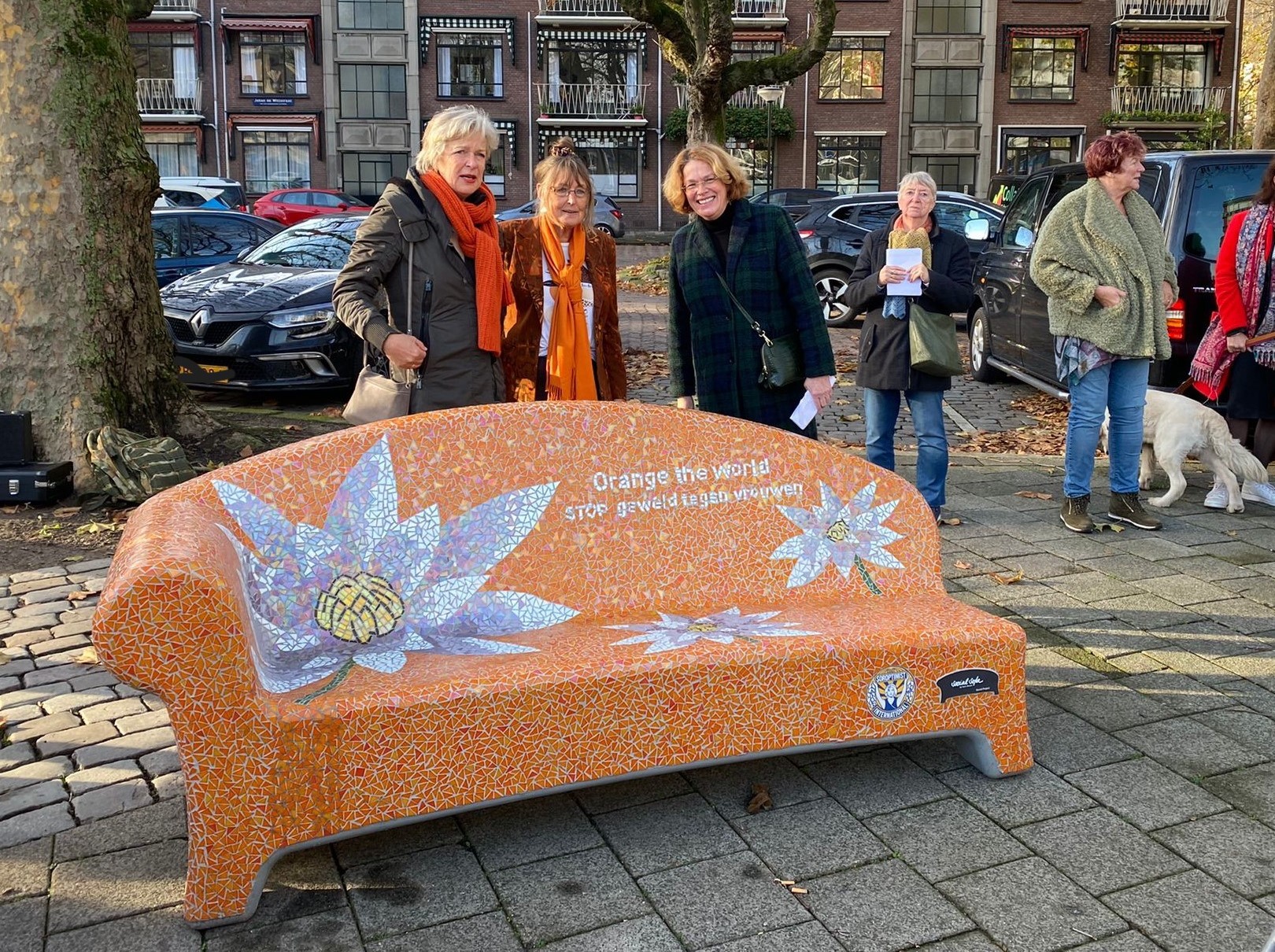Mozaïekbank Dordrecht Mozaïekbank Dordrecht. Alle leden van de Soroptimist club Dordrecht hebben eigenhandig meegewerkt aan de totstandkoming van de Orange the World mozaïekbank die een plaats heeft gekregen in de Johan de Wittstraat in Dordrecht. Op 22 november 2022 werd de bank onthuld.