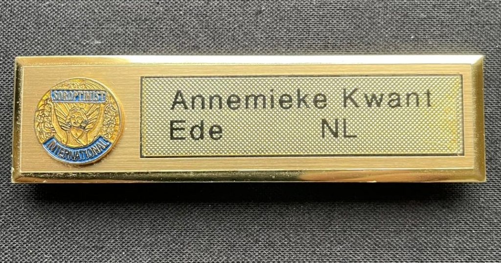 Verder verkopen wij prachtige goudkleurige naambadges (zie foto) voor soroptimisten.