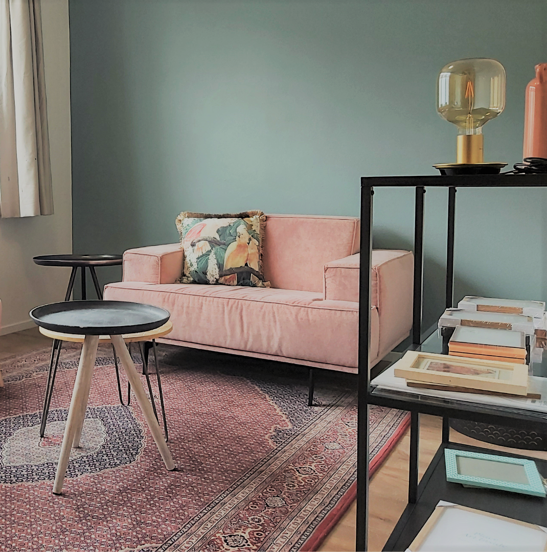 Trots op resultaat. We zijn trots op het resultaat. We hebben veel geduld gehad, zijn flexibel geweest en hebben ons door onszelf laten verassen. Want van in eerste instantie een basis met een groen bankje met groene stoelen, zijn we gekomen tot een basis van een roze loveseat, roze stoeltje en poefje. De uitstraling is verassend, fris en tegelijk vriendelijk warm.