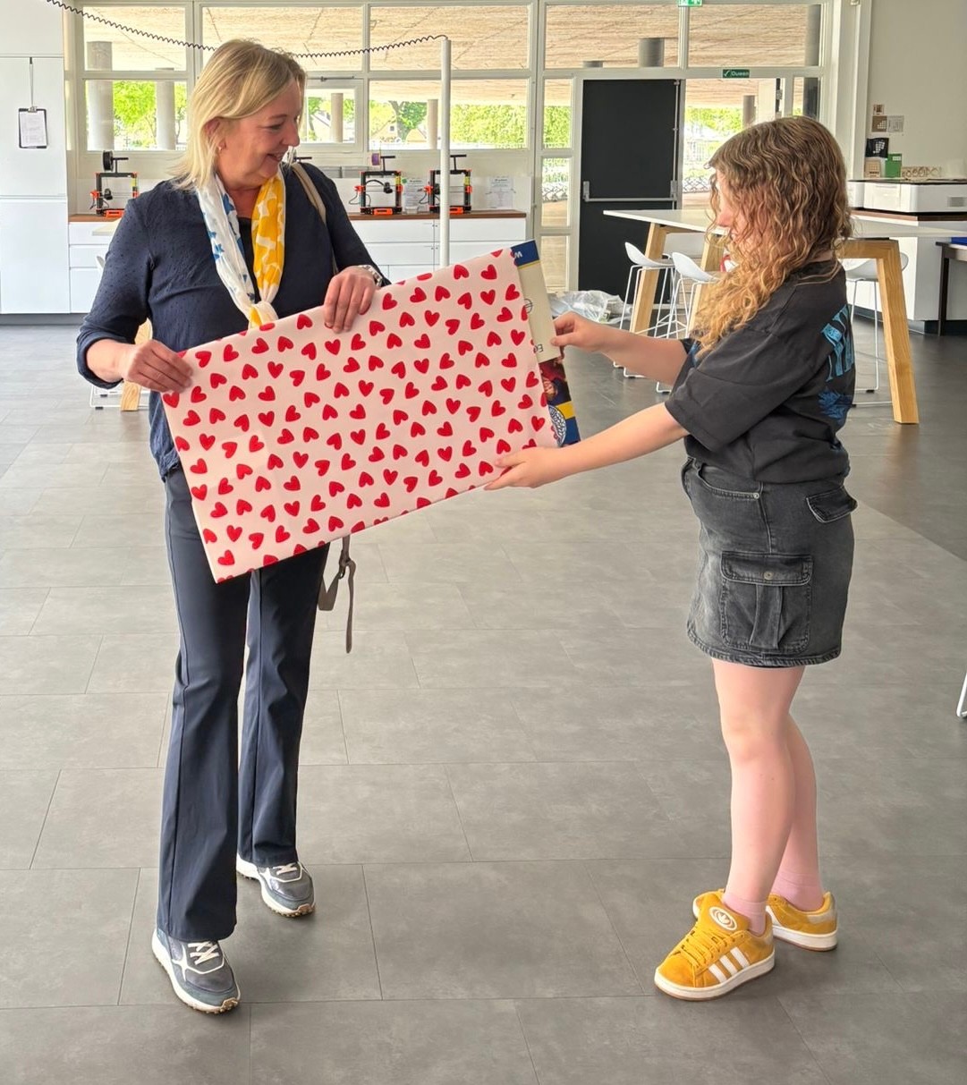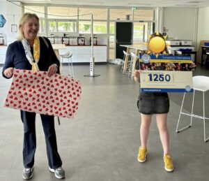 Het Soroptimist Vrouwenfonds NL heeft hier nog een bedrag aan toegevoegd. En zo kon er nu een mooie cheque van € 1.250 overhandigd worden door onze voorzitter, Petra Bosscher.