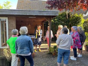 Vervolgens werd er getoast in de tuin bij één van onze leden.