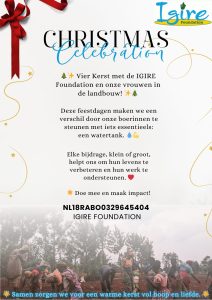 Op woensdag 18 december 2024, hebben we Delphine Ingabire van Igire Foundation €1000,- overhandigd voor haar watertankproject in zuidelijk Rwanda. Igire Foundation ondersteunt de boerinnen in zuidelijk Rwanda, om hun een bestaan in de landbouw te gunnen.