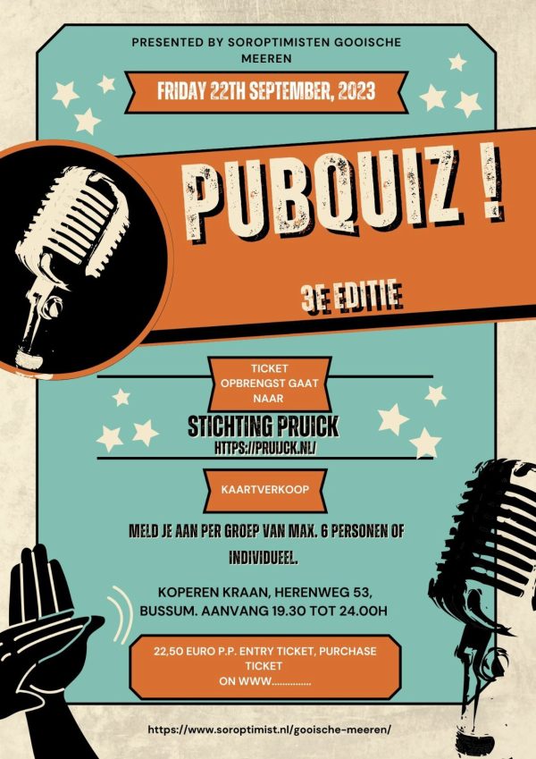 Op 15 november 2025 organiseren de Soropitimsten international Gooische Meeren voor de 4e keer een pubquiz. Onder professionele begeleiding strijden we voor de wisseltrofee en andere mooie prijzen.