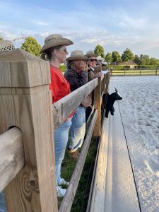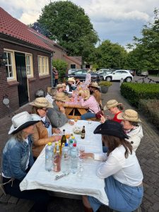 Het was een boeiende en gezellige avond in Western style, inclusief cowboy hoeden, hamburgers van de BBQ (in ruil voor een winterpeen voor de paarden), uitleg, demonstraties en last but not least een rondje line dance.