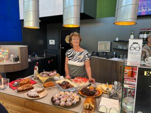 Onze sorren staan klaar om een heerlijke gebakje aan te bieden.Alles gebakken door onze eigen leden.Proeven gaat nog beter met een theedoek over het hoofd. Beeld uit de film.