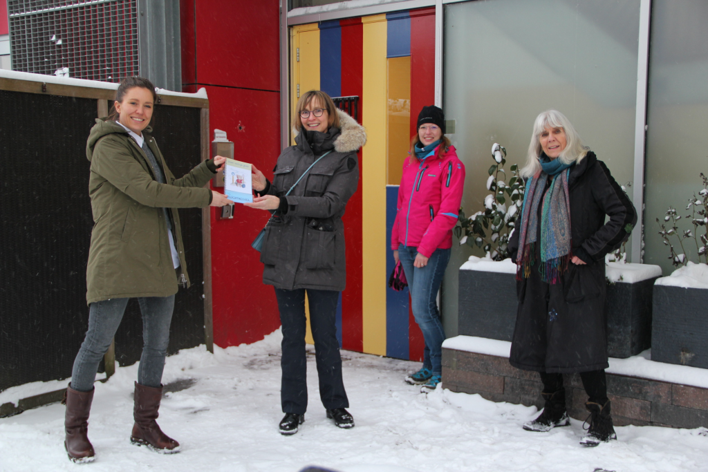 Onze tekenares Kristel nam de foto. De doos met boekjes ging naar binnen. En wij weer naar huis. De laatste Vluchtheuvel-wens was vervuld. Ons Vluchtheuvel Project was klaar!