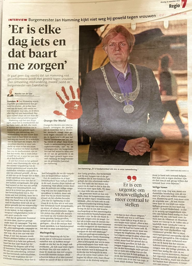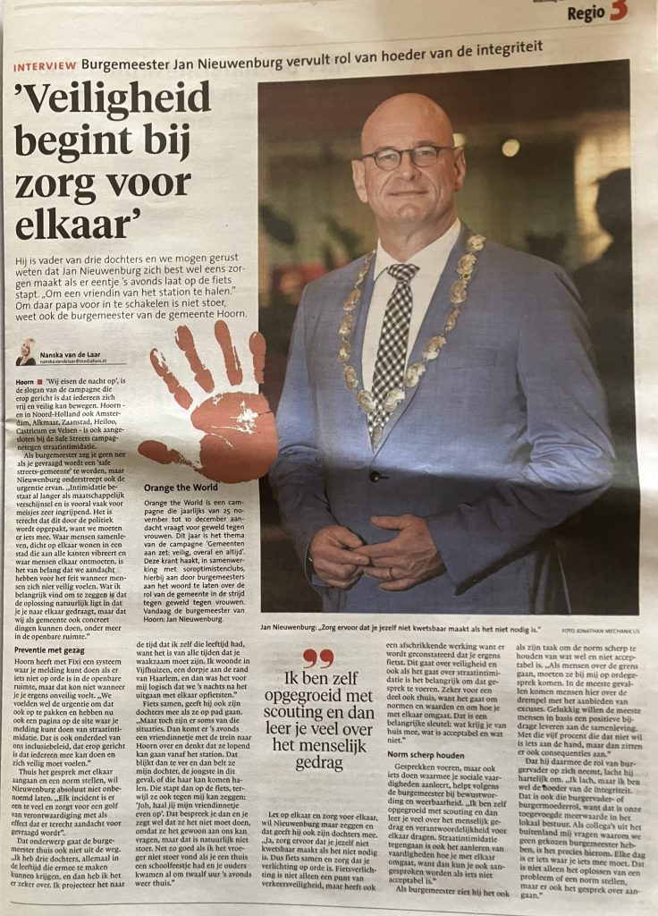 Het Noordhollands dagblad haakt, in samenwerking met soroptimistenclubs, hierbij aan door burgemeesters aan het woord te laten over de rol van de gemeente in de strijd tegen geweld tegen vrouwen.