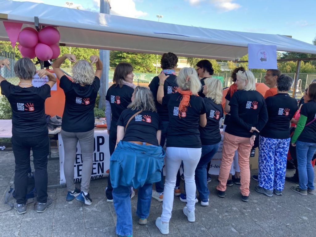 Voor Soroptimistclubs Leiden Aurora, Leiden en het Vrouwennetwerk Leiden e.o. was dit sportieve evenement meteen de aftrap voor de activiteiten rond Orange the World – de jaarlijkse wereldwijde campagne tegen geweld tegen vrouwen. We hadden een kraampje waar OtW merchandise als T-shirts en paraplu’s werden verkocht.