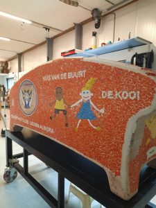 De Social Sofa De Kooi vordert gestaag. Dankzij enthousiaste mozaïekers van binnen én van buiten Leiden Aurora.