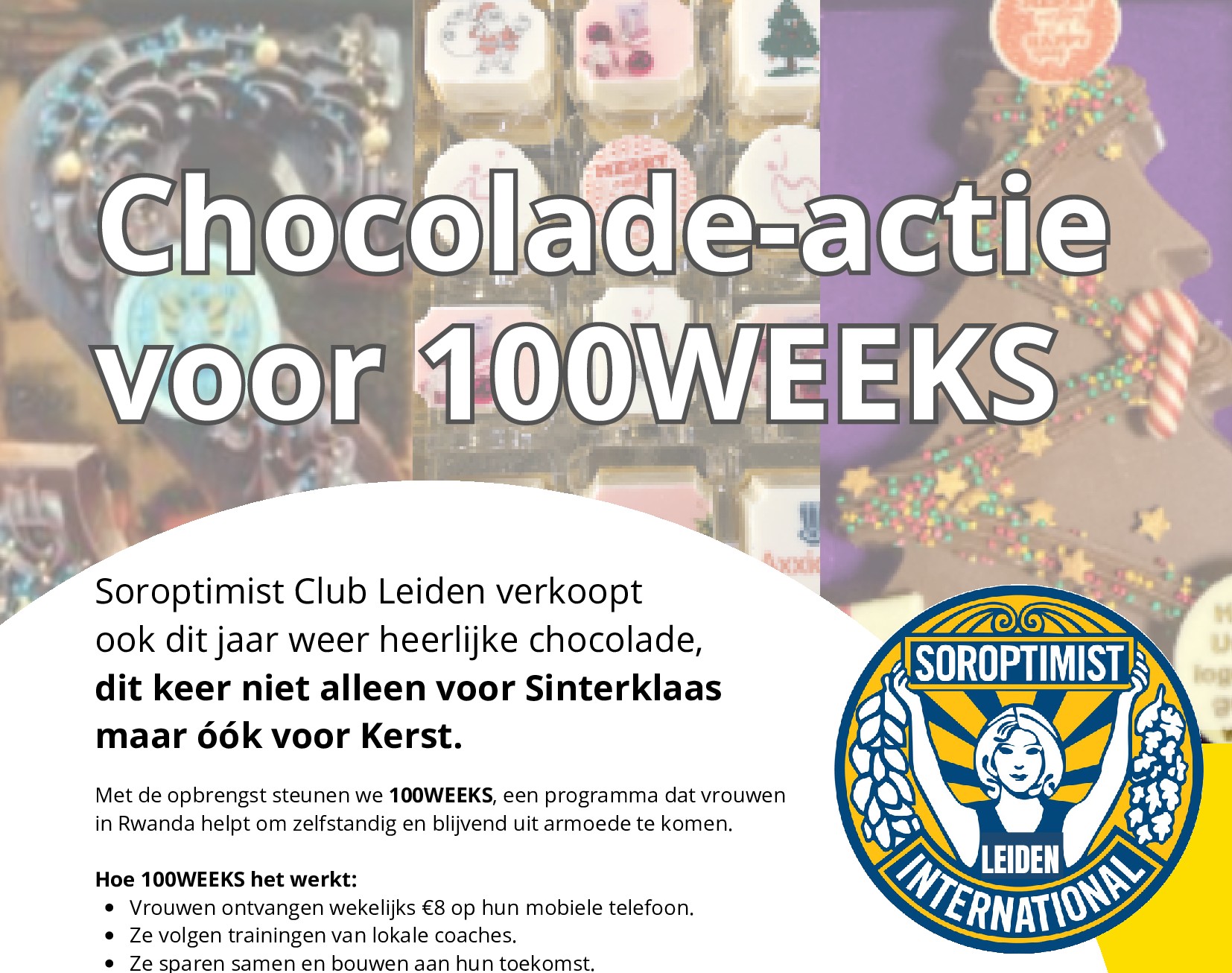 We hebben weer onze jaarlijkse chocolade actie waarvan de opbrengst naar het goede doel gaat: 100WEEKS