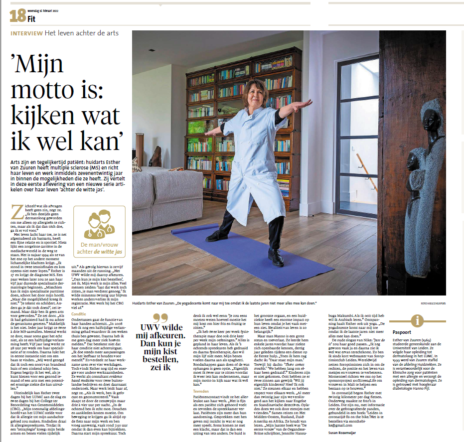 Ons lid Esther in beeld in de een nieuwe serie van het Leidsch Dagblad ‘achter de witte jas’