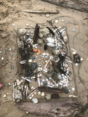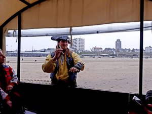 De huifkar (getrokken door een tractor) arriveerde met een echte strandjutter als chauffeur en gids. We trokken over het strand, er was van alles aangespoeld en dat gingen wij ‘jutteren’.