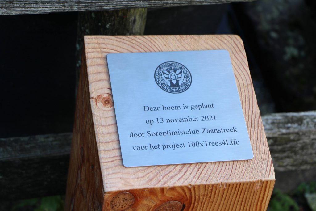 Er waren ongeveer 22 personen aanwezig bij de feestelijke onthulling, waaronder leden van de Soroptimistenclub Zaanstreek, 2 leden uit Hoorn en ook toevallige gasten van de Poelboerderij. Voorafgaand aan de officiele onthulling konden zij luisteren naar een korte inleiding over het hele project door Anneke Rohling, presidente van club Zaanstreek en naar Fred Roovers, boomdeskundige van de Heemtuin in Zaandam, die een interessante lezing hield met als titel “Bomen over bomen’’. Als bedankje kreeg hij de aanbieding, dat de volgende boom van 100xTrees4Life geplant gaat worden in de Heemtuin.