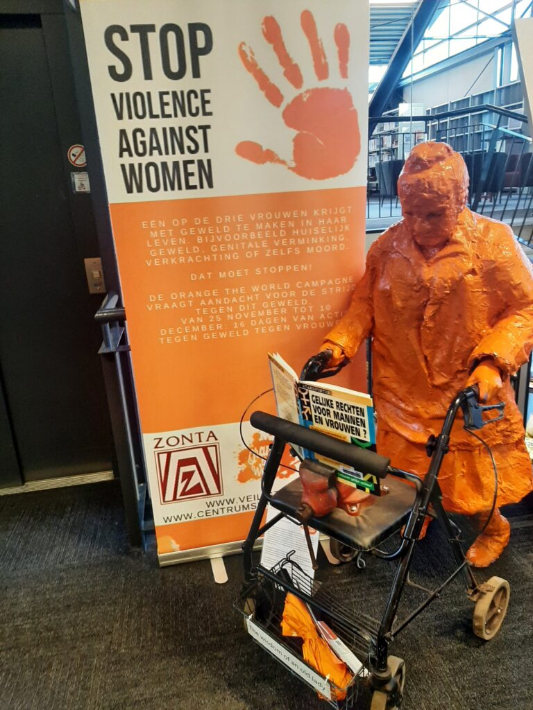 “Ik hoop nog lang door te gaan met mooie beelden maken die gerelateerd zijn aan vrouwenemancipatie. Mijn kunstwerk The wisdom of an old lady uit 2015 verwijst naar de kennis en wijsheid van een vrouw op leeftijd. Ze duwt een rollator voort maar staat nog midden in het leven en baant de weg vrij voor volgende generaties vrouwen. Ik creëerde het beeld destijds ter ere van een expositie voor Internationale Vrouwendag. Inmiddels heeft het kunstwerk al veel exposities bezocht en rondom OtW trekt ze haar oranje kleren aan om de actie te ondersteunen!”