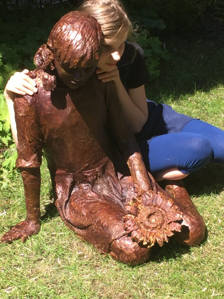 “Een rode draad in mijn werk is de educatie en emancipatie van vrouwen. Dat is goed terug te zien in onder andere het monumentale en kleurrijke beeld Lezend meisje, aangekocht door Bibliotheek Hilversum in 2016. En in 2018 portretteerde ik blind een meisje via een levensgroot bronzen beeld. We werkten samen in het portret Als je alleen met je handen kan zien. Het was een heel bijzondere samenwerking om een ‘bronzen selfie’ te mogen maken met haar.” “Mijn beelden worden gekenmerkt door karakter, verdieping en kracht. Het is een uitdaging om met gevoel weer te geven wat mensen ‘beweegt’ in onze huidige tijd. De stijl van mijn werk laat zich omschrijven als intuïtief en vloeiend, met een eigen handschrift. Meestal heeft mijn werk een maatschappelijk karakter.”