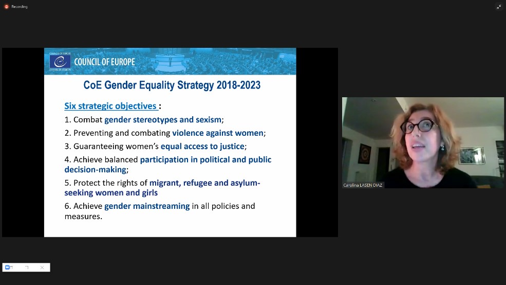 Bettina Hahne, onze SI vertegenwoordigster in Straatsburg nam ons op 12 april jl. mee in een virtuele tour van het gebouw terwijl zijzelf, de programmamanager van de Gender Equality Divisie en een Servisch parlementslid ons op gepassioneerde wijze vertelden over hun werk. Volgens Bettina hebben de Raad en SI veel gemeenschappelijk: beiden werken aan mensenrechten en gelijkheid tussen mannen en vrouwen. Je kunt de rondleiding en presentatie terugzien op: https://www.soroptimisteurope.org/virtual-visit-of-the-council-of-europe/