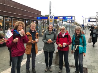 Rond half 10 gaan we op stap. We zijn met 5 Soroptimisten van club Isalania Zwolle-Kampen. Vorige week hebben we een proefrondje gelopen van 18 kilometer, dus de finish in Raalte over 28 kilometer gaan we zeker halen.