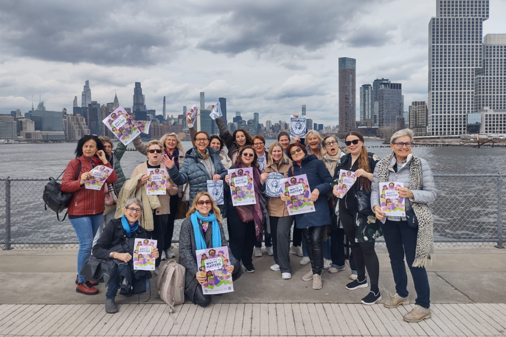 Ieder gewapend met een brief van Buitenlandse Zaken, voor het geval we problemen zouden krijgen bij binnenkomst in de VS, vertrokken mijn Soroptimistclubgenoot Cathrien Resius en ik op 6 maart jl. naar New York. Ook al was ons risicoprofiel – 60+, wit en ogend als shoppende en museumminnende toeristen – minimaal, helemaal zeker weet je het niet in deze tijden. We kenden allebei verschillende  leeftijdgenoten met eenzelfde profiel die het niet aandurfden om dit jaar af te reizen naar CSW70. Nadat we diverse appgroepen en posts van onze smartphones hadden verwijderd, belandden we – geheel mentaal voorbereid – in Terminal 4 van JFK bij de douane van de VS, in de kortste rij ooit. Het was in 15 minuten voorbij, ik ratelde wat over “showing my bff the best of NY” en Cathrien deed hetzelfde. We waren eerlijk gezegd toch best opgelucht en plaatsten vrolijk alle verwijderde apps en posts terug op onze smartphones. Het avontuur kon beginnen!