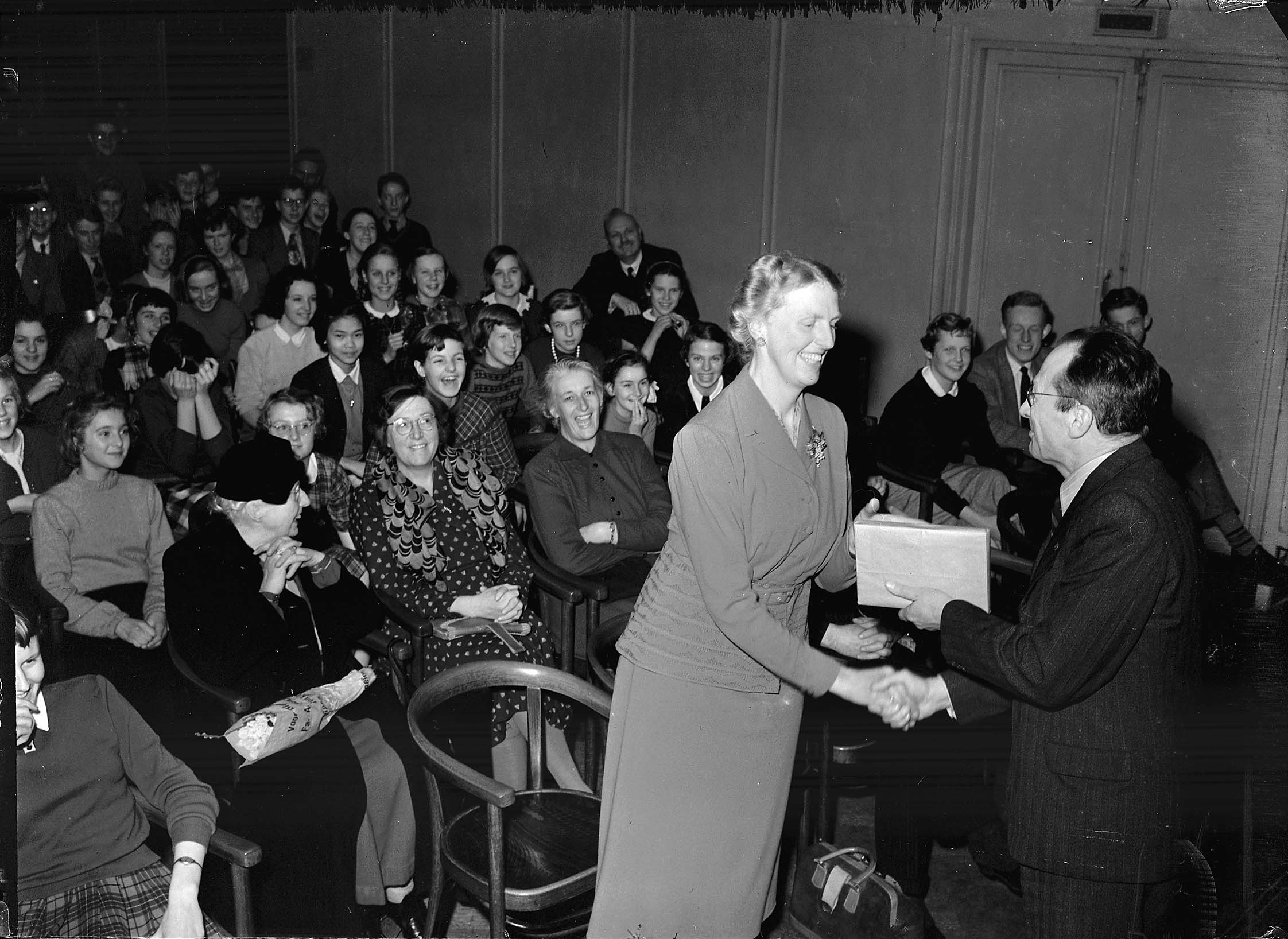 Het ideaal dat ons Soroptimisten verbindt, is wel zo positief en zo levend, dat het een heel sterke band tussen ons allen moet betekenen. Wij zullen bij momenten de intieme, zusterlijke omgang van de bezettingstijd met weemoed terugwensen – als we doordenken, weten we dat dit andere een blijvender waarde en kracht bezit; dat wij een sterk fundament hebben en daar rijk mee zijn. Want op alle terreinen van het beroepsleven werkzaam, in allerlei streken van ons land, met onze zeer verschillende aard, overtuiging en belangstelling, kunnen wij op dat sterke gemeenschappelijke fundament op hoe bescheiden schaal ook helpen bouwen aan een betere samenleving. Een samenleving waarin niet de splijtende, verdelende kracht van het menselijk egoïsme hoogtij viert, maar de bindende, verenigende kracht van dienst. Mogen wij dat meer en meer gaan zien als het voorrecht en de verplichting van ons Soroptimisme.”